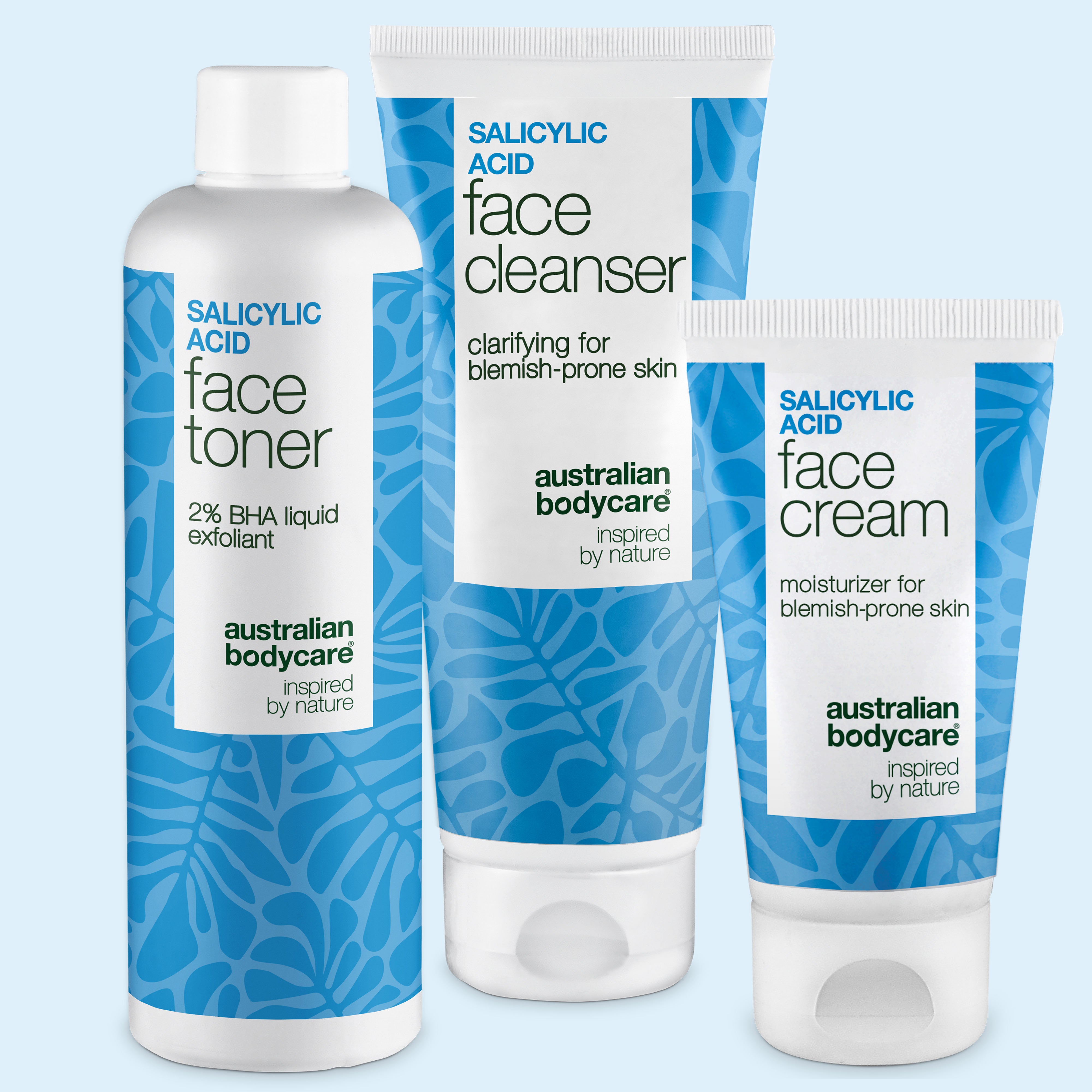 Australian Bodycare tarjoaa täyden valikoiman salisyylihappoa sisältäviä tuotteita – mukaan lukien kasvoputsarit, seerumit, voiteet, kuorinnat, shampoot, vartalopesut ja paikallishoitoon tarkoitetut tuotteet. Kaikki on suunniteltu syväpuhdistamaan ihohuokosia, poistamaan kuollutta ihosolukkoa, tasapainottamaan talintuotantoa ja parantamaan ihon rakennetta – hellävaraisesti mutta tehokkaasti.